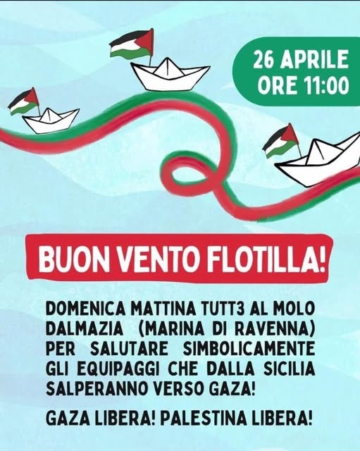 Da Ravenna a San Benedetto del Tronto, e in tanti altri porti d’Italia, domenica 26 aprile, alle ore 11 ci ritroveremo sui moli per sostenere e salutare la Flotilla.