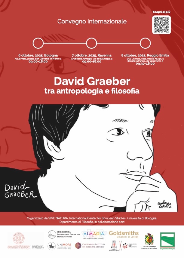 Il nostro è un tempo di cambiamento, la fine di un mondo, un kairos in cui tutto è possibile, eppure noi restiamo bloccati, persi in un labirinto di miti che ci intrappola in un presente apparentemente inevitabile. Così incapaci di immaginare futuri diversi, di fronte alla crisi del capitalismo, ci aggrappiamo disperatamente allo status quo per paura di ciò che ci aspetta. Smantellare questo labirinto è stato il compito che Graeber ha perseguito per tutta la vita, e il suo lavoro ci è più che mai necessario oggi, se vogliamo che sia nuovamente possibile immaginare collettivamente un futuro. Per questo abbiamo scelto di dedicare una conferenza alla sua eredità: tre giorni fra Bologna, Ravenna e Reggio Emilia, in cui esploreremo insieme alcune delle possibilità che Graeber ci ha mostrato: riguardo alla natura umana, riguardo alle forme concrete di autogoverno, riguardo al modo in cui dobbiamo intendere il valore e i valori. Siamo diffidenti nei confronti del “sé monastico” quanto lo era Graeber, e vogliamo che questa sia il più possibile una conversazione: lasceremo ampio spazio al pubblico che invitiamo non soltanto a porre domande, ma a partecipare al confronto.