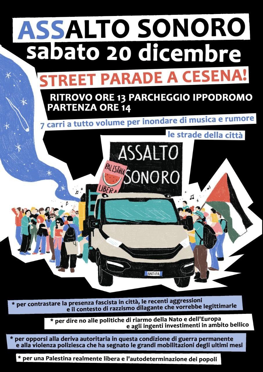 7 carri a tutto volume per inondare di musica e rumore le strade della città!