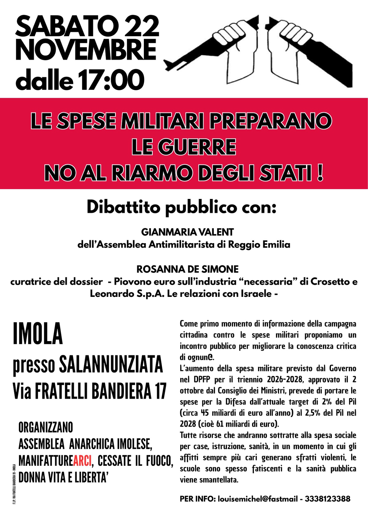 Come primo momento di informazione della campagna cittadina contro le spese militari proponiamo un incontro pubblico per migliorare la conoscenza critica di ognun@.