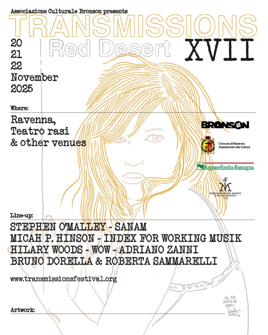 Transmissions Festival torna a Ravenna da giovedì 20 a sabato 22 novembre con un omaggio a Deserto Rosso di Michelangelo Antonioni, film-culto del 1964 girato in città e divenuto nel tempo riferimento trasversale per musicisti e artisti di tutto il mondo. A partire da questa edizione il format del festival, negli ultimi anni caratterizzato dalla curatela esterna (Marta Salogni, Kali Malone e Moor Mother le più recenti), sarà incentrato su un asse tematico per tutto il prossimo triennio, con la direzione artistica del team di Bronson guidato da Chris Angiolini...